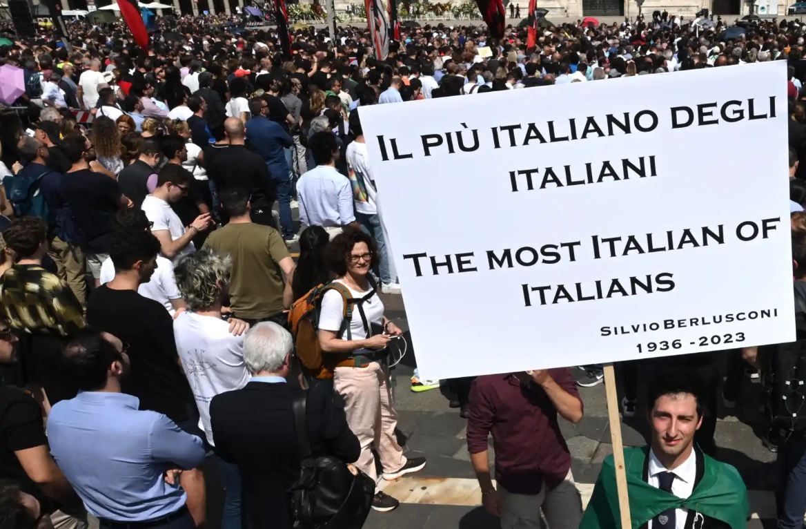 Por todo esto no sorprende que en su funeral, donde los más exaltados cantaban “chi non salta è communista”, entre los muchos carteles con mensajes de admiración y afecto popular intercalados en un mar de banderas de Forza Italia y su equipo de fútbol, el Milan, hubiera uno que dijese: “El más italiano de los italianos”. Acaso Berlusconi vive en cada compañere.