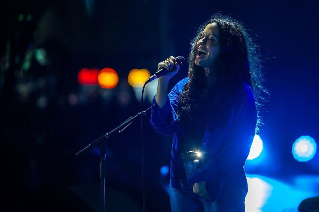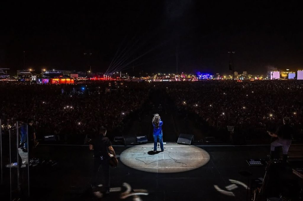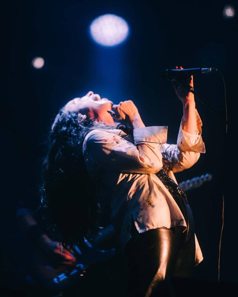 Recorre el escenario como si flotara, de un lado a otro, con su melena de frizz, vestida con una camisa de seda azul con dos aureolas de transpiración tatuadas debajo de las axilas, un pantalón metalizado atemporal y unas zapas que todas podríamos tener. “Hace dos días que no puedo parar de llorar; pero no es tristeza, es emoción: emoción de haberme conmovido, de que Alanis me haya conmovido con tanta belleza”, me dice mi amiga María Guerrero Menéndez, que pudo presenciar el show de Alanis Morissette en el Lollapalooza.