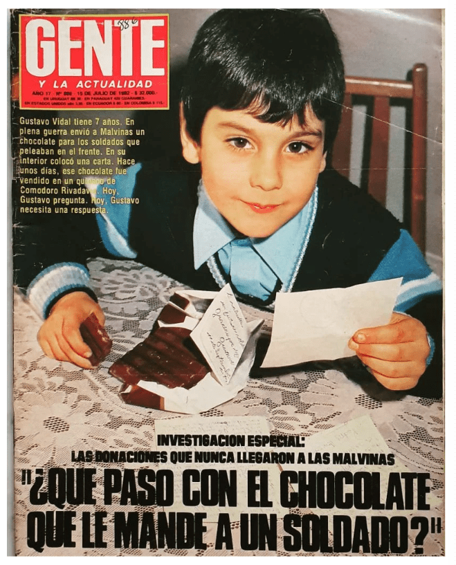 Mi escuela, la Escuela N°34 Almirante Guillermo Brown de Villa Ballester, armó una gran colecta donde cada alumno debía llevar lo que pudiera. Y los padres decidieron poner bastante. Mis papás ampliaron su compra mensual en la proveeduría del banco Provincia agregando chocolates y diversas latas. Para ellos era fundamental que los chicos no pasaran hambre. Mi abuelo tenía aún su fábrica de frazadas, fundida ya y él a punto de rendirse, pero donó muchas. Los soldados no podían pasar frío, decía.