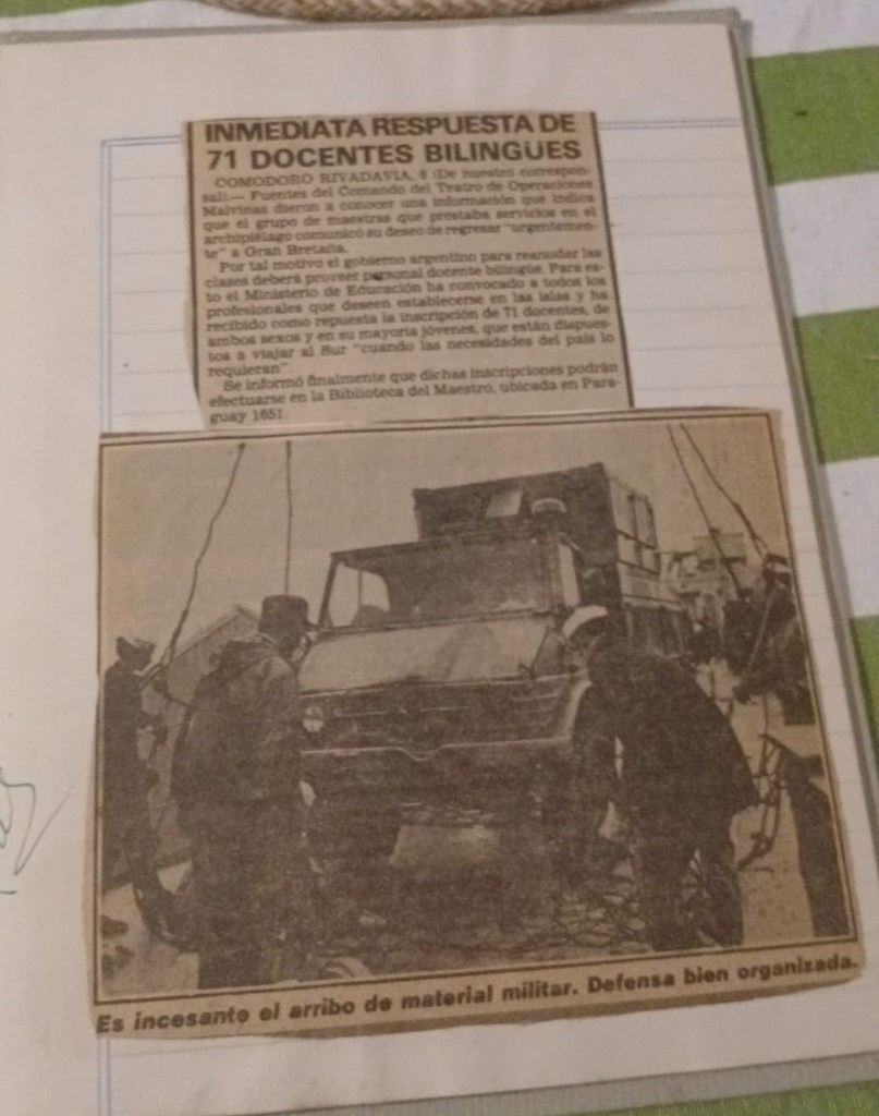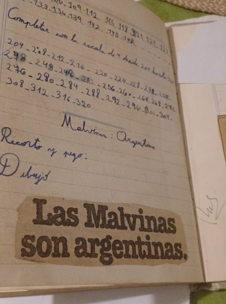 “Las Malvinas son argentinas”, escribimos aquel viernes 2 de abril dando inicio así a los meses en los que cada día hablaríamos de Malvinas. Ya fuera para interiorizarnos sobre la fauna o la flora de nuestro territorio austral, picando con papel glacé el contorno de las islas para grabar en nuestra mente sus formas o llevando algún recorte de diario que tratase sobre el conflicto para estar al tanto de lo que iba sucediendo. Fueron días y días donde los niños nos compenetramos con la guerra. Al izar y arriar la bandera, se cantaba el himno a Malvinas, que nos conmovía porque sonaba hermoso; pero además se nos invitaba a ser solidarios, ya que el compromiso de cada uno de los argentinos iba a ser fundamental al enfrentarnos a ese enemigo que tenía todo para ganar. Y así se hizo, nadie quedó fuera del espíritu solidario de ese instante de la historia, que es muy reciente.