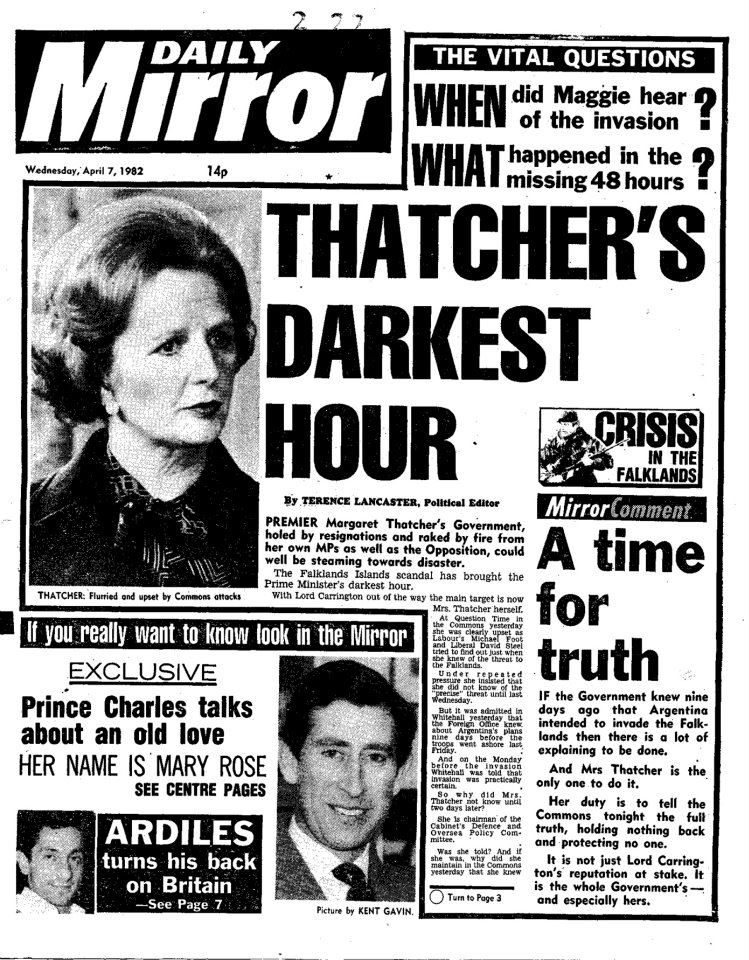 Hacia el 4 de abril, a Margaret Thatcher le es entregado un resumen de prensa preparado por su equipo en Downing 10. El título del informe dice: “Las Falkland Islands dominan la prensa mientras el gobierno enfrenta la mayor crisis desde las elecciones”. Los siguientes son algunos de los puntos del brief de prensa.